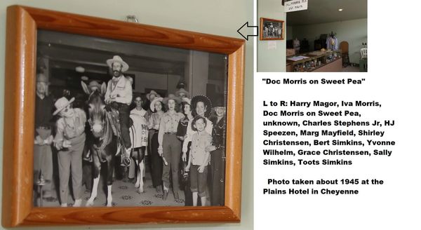 Doc Morris on Sweet Pea. Approx. 1945 at Palins Hotel in Cheyenne, WY.