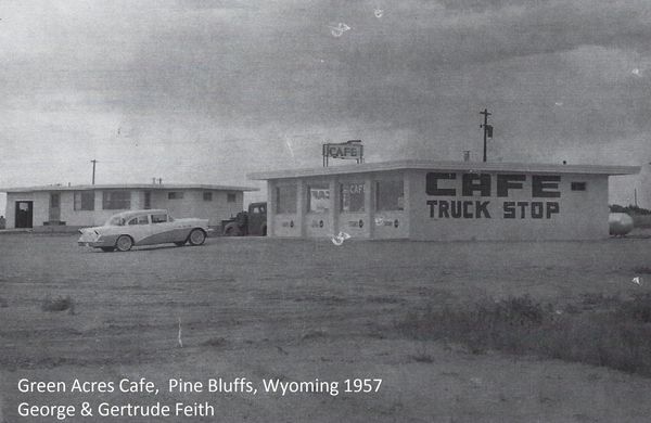 1957. Green Acres Cafe, owned and operated by George & Gertrude Feith, Pine Bluffs, Wyoming.